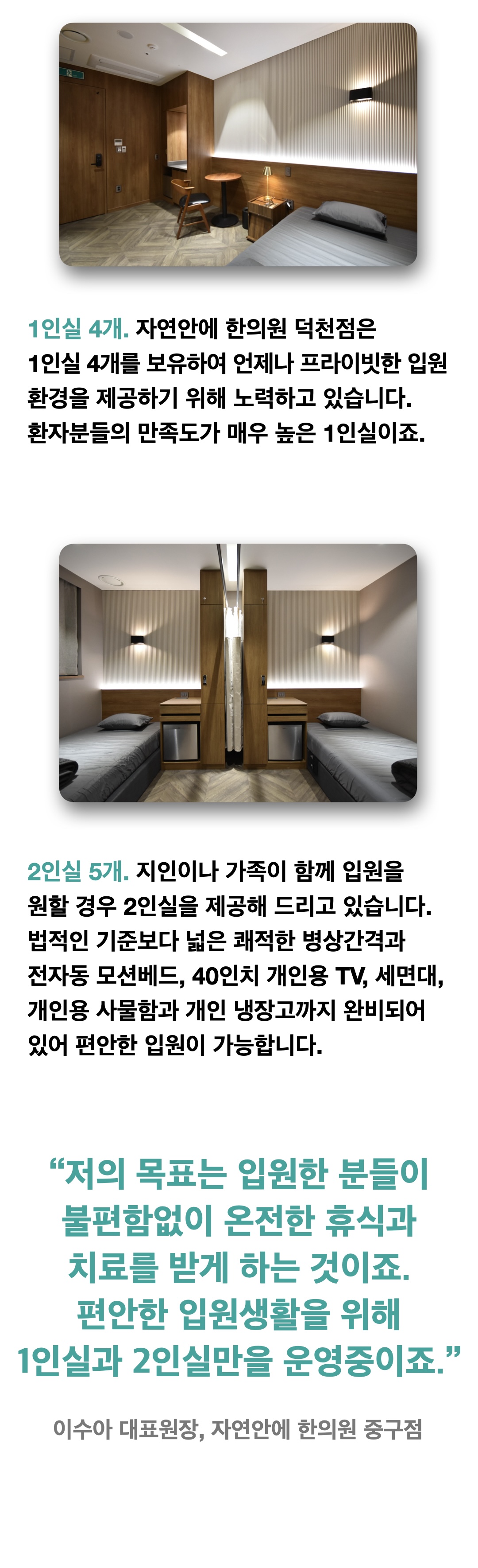 쾌적한 1인실·2인실 입원실 운영